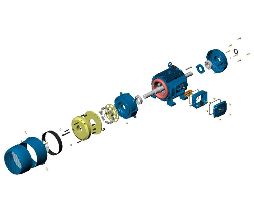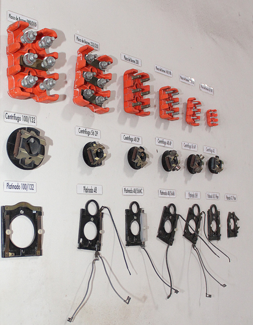 Peças para motofreios WEG: Caixa de ligação; Carcaça eletroÃmã; Disco de freio; Ponte retificadora; Tampa defletora; Tampa traseira; Arruela ondulada; Cinta de borracha; Pastilhas de freio; Molas de pre-cargas; |